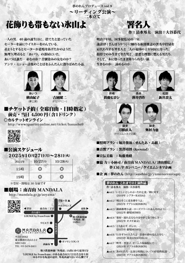リーディング公演『花飾りも帯もない氷山よ/著名人』